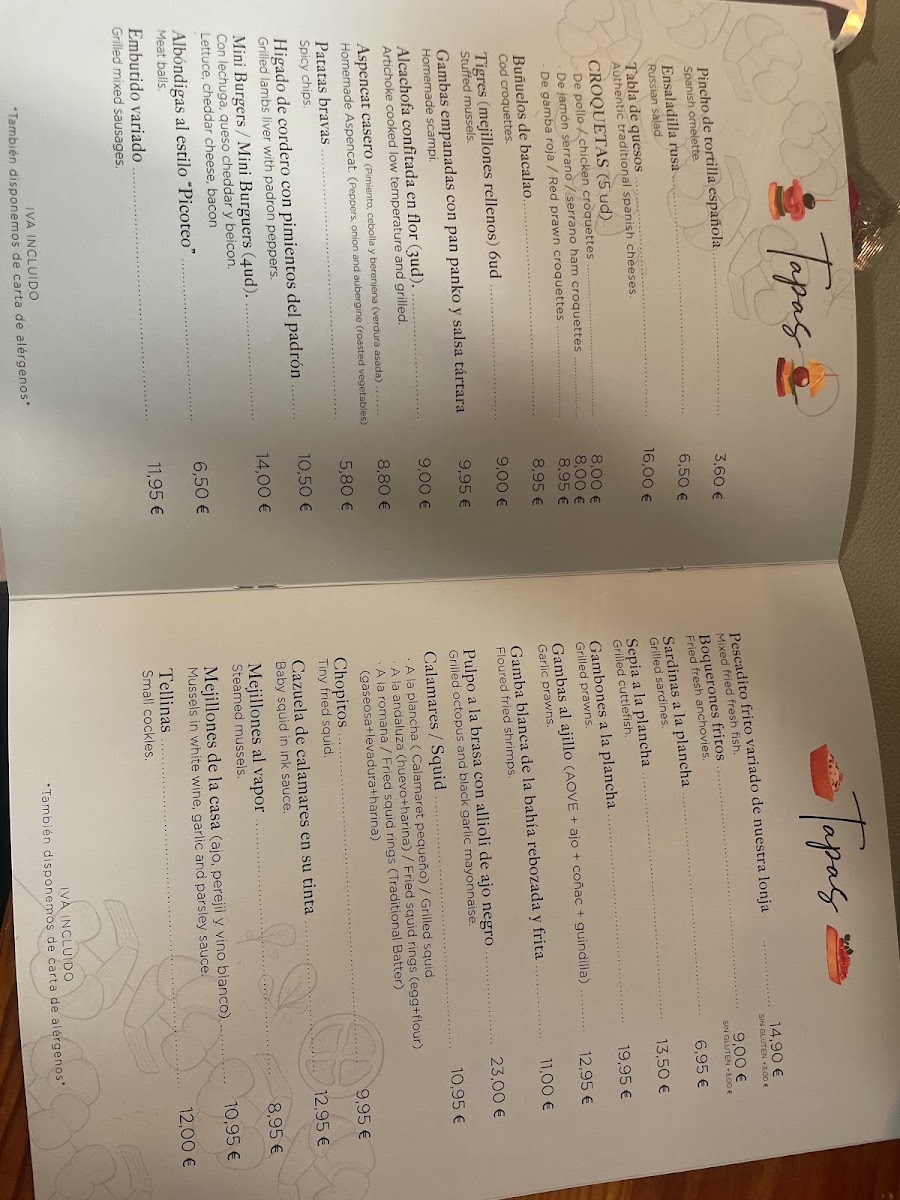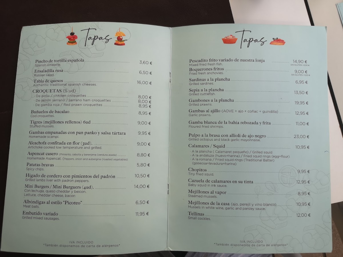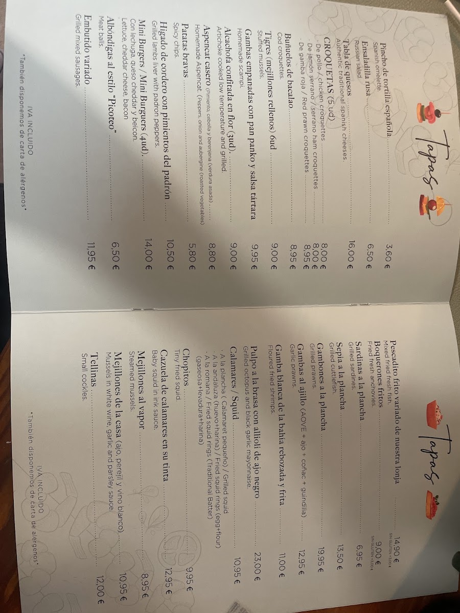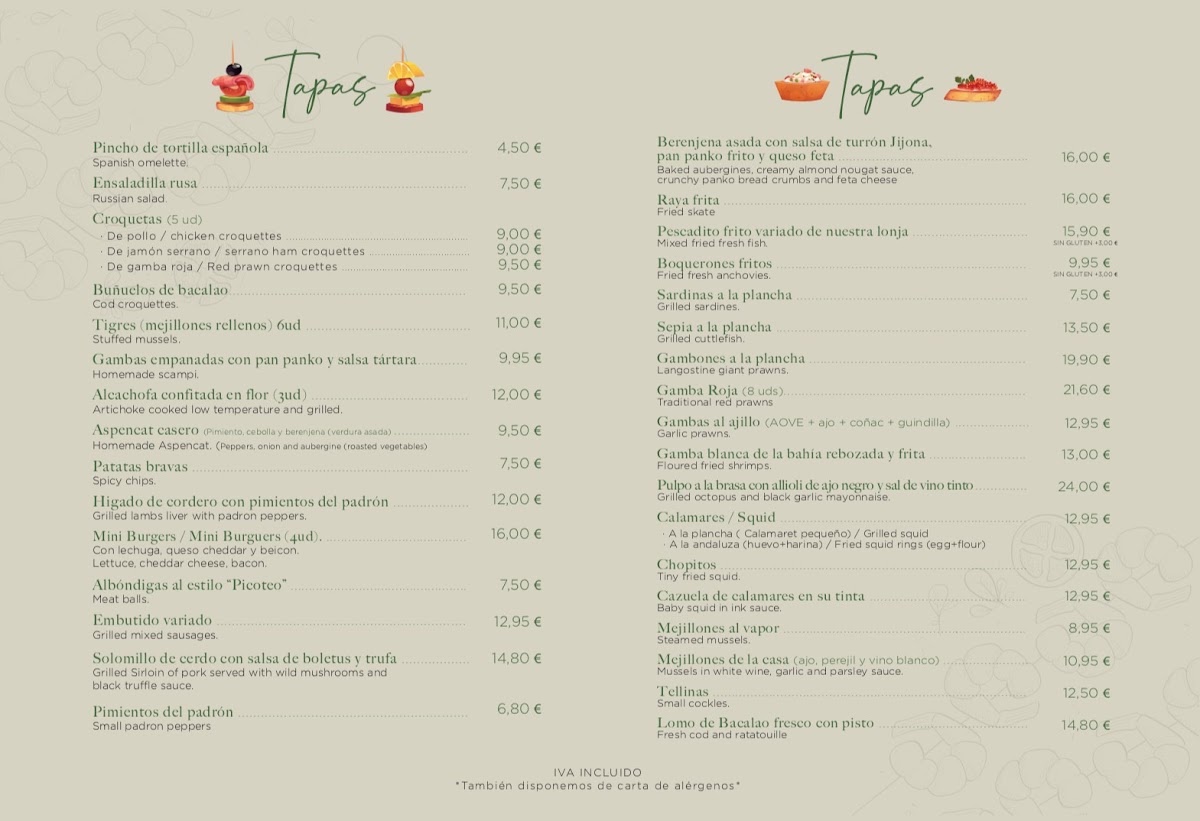 From a reviewer’s perspective, the menu at Picoteo Port offers a well-balanced selection of Mediterranean tapas that highlight fresh seafood and classic Spanish flavors. The Sardines stand out for their freshness and simple preparation, allowing the natural flavor of the fish to shine through, while the Calamares A la Andaluza are crisp, light, and expertly fried, making them one of the most satisfying dishes on the menu. Overall, the menu reflects a thoughtful mix of traditional coastal dishes and casual tapas, making it ideal for sharing and sampling a variety of flavors. The focus on quality ingredients and straightforward preparation gives the menu an authentic, relaxed character that fits perfectly with a seaside dining experience, leaving a strong final impression for anyone looking to enjoy classic Spanish seafood dishes in a laid-back setting.